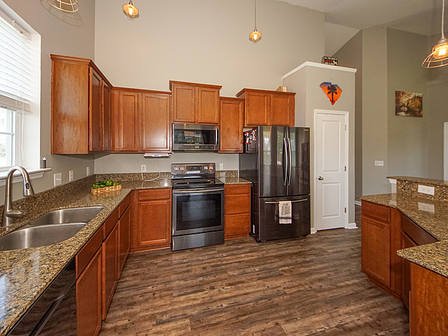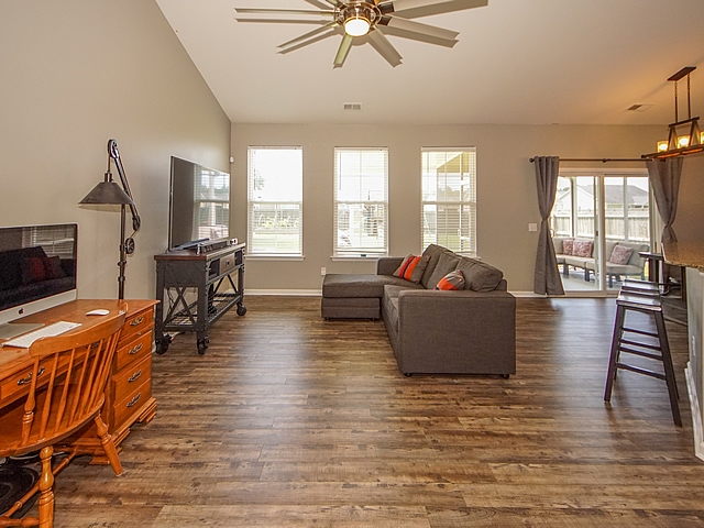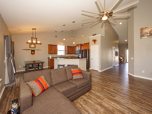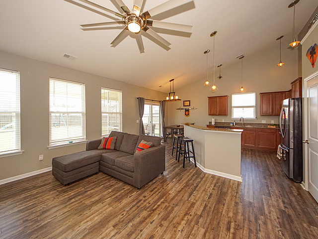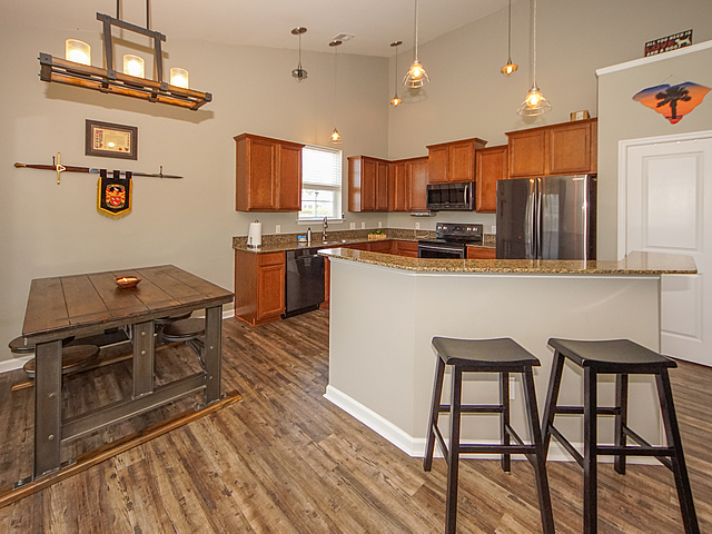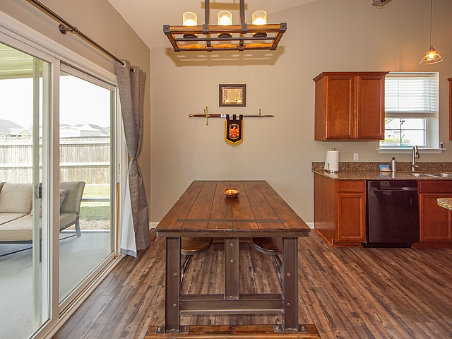 Opportunity is knocking - single story home on large 1/4 acre lot with fenced yard. Vaulted ceilings, new upgraded luxury vinyl plank (LVT) flooring throughout all living areas, carpet in bedrooms. Upgraded kitchen with staggered cabinets, solid surface countertops, island with bar top, and black stainless appliances. Split bedroom floor plan. Master bedroom includes a walk in closet and luxurious bath suite with separate shower and soaking tub. Screened porch with extended covered patio, storage shed, and drive through gate. Extra electrical outlets in garage and a 220 volt exterior outlet for camper. HOA allows for campers and boats to be parked in rear yards - convenience and save on expensive storage fees. Dorchester II Schools. Neighborhood pool. 11 miles to Volvo. Must see! |