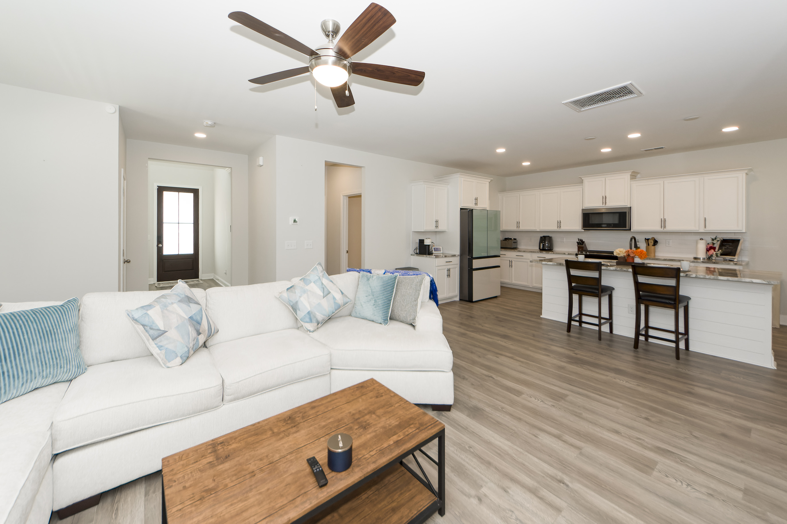 Like New ''Finley'' floor plan - Ready and Available Now! Seller's job transfer is your opportunity to move in now - why wait for new construction? Dramatic entry with 2 story foyer. Open floor plan downstairs features laminate flooring with gourmet kitchen, family room, dining area and powder room. Granite counters and large island highlight the kitchen, with stylish white cabinetry, stainless steel appliances including gas range, dishwasher and microwave, and a walk in pantry. Family room features a gas fireplace and access to screened porch and back yard. Drop zone with shiplap siding is perfect place to store your shoes and jackets when entering from the 2 car garage. Upstairs, large master suite with tray ceiling and luxurious bath. Bath includes large walk in closet, tile flooring, tiled shower and separate garden tub. Loft is a great place to hang out and provides separation from two secondary bedrooms. Secondary bedrooms are well sized and share a hall bath with double sinks. Laundry is conveniently located upstairs. Keyless entry front door and security system included. Foxbank Plantation is conveniently located off Highway 52, and offers many excellent amenities including a 67 acre lake, swimming pool, dog and play parks, walking trails and more. Foxbank Elementary School is located within the neighborhood and shopping, dining, and more are just down the street at the Highway 52 entrance. Do yourself a favor and schedule an appointment to see 110 Forest Springs Road today! |