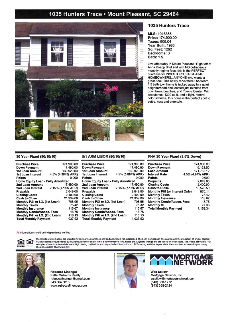 If you cannot see the image above, please visit: http://www.charlestonvirtualhomes.com/flyers/1035HuntersTrace_071410.htm