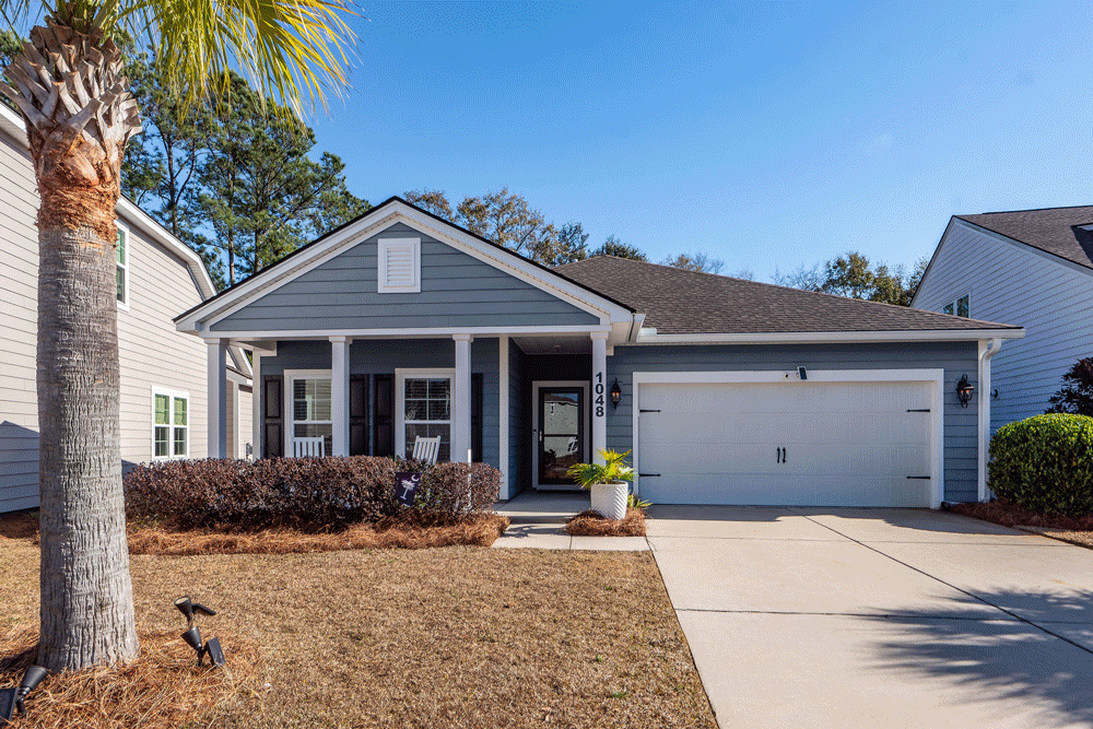 This beautiful like-new one story hardie plank home with hurricane proof windows & front porch features 3 bedrooms, 2 baths & attached 2 car garage. The large open floor plan showcases arched entries, high ceilings, eat-in kitchen with large island & separate dining room. Large screened porch opens to back patio & private tranquil fenced backyard with irrigation system. Custom designed closets in pantry, linen and primary bedroom closet. Laundry room has built-in cabinets. LVP and ceramic tile floors.