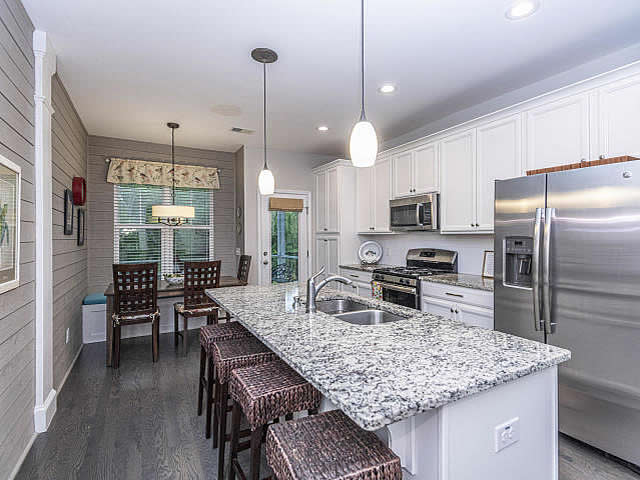 Great opportunity for a townhome in The Landing, in Grand Oaks. The Marion floorplan has a master downstairs. The open floor plan is great for entertaining! Beautiful hardwood floors in the main living areas, upgrades include built in shelving, shiplap, built in bank seating, backsplash and a large kitchen island. The master bath features a 5'shower, raised vanity, separate water closet and a huge walk in closet. The laundry room is also located downstairs for ease and convenience. Upstairs you will find the other two bedrooms, full bath, along with loft area that is great flex space. The landscaped yard with weekly yard maintenance, exterior maintenance included in the HOA. The homes share an outside common wall in the storage room only, no living walls are shared.