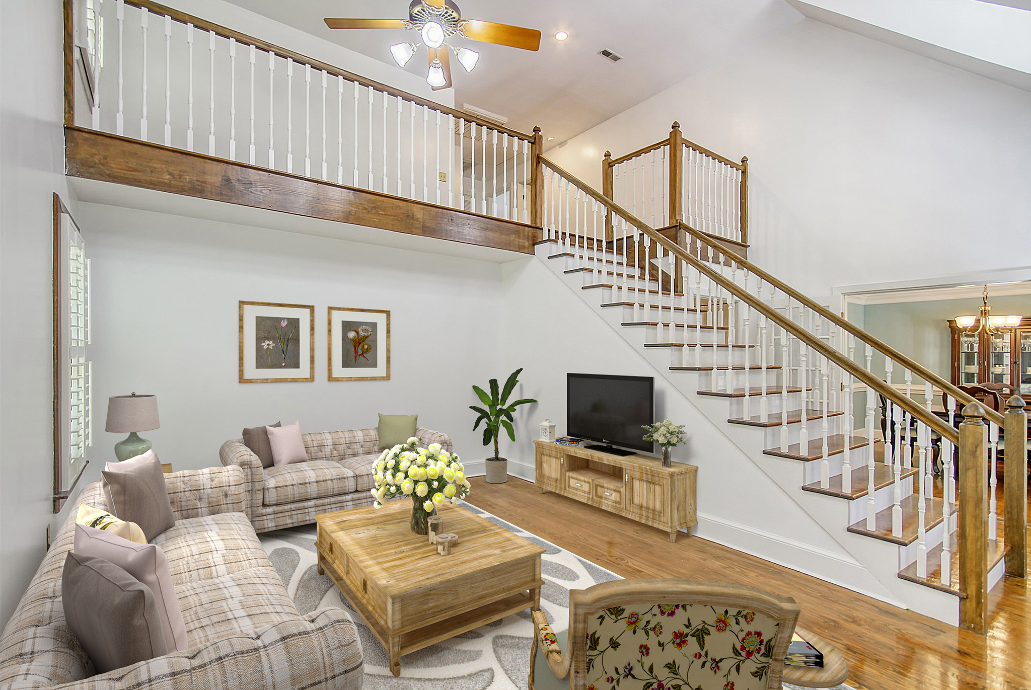 Dining and Kitchen: Enjoy family meals in the full dining room, and the kitchen with solid oak cabinets providing ample storage, small island and Corian countertops. It's a space where culinary creations come to life.
