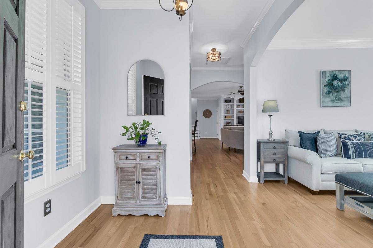 Plantation shutters throughoutAll new ceiling lightsRefinished hardwoods on main levelNicely sized dining and living roomsNew gas fireplace in living roomBeautifully converted screened porch to sunroomBeautiful kitchen with tons of counter space, honed granite countertops, and newer GE AppliancesEat-in area with bay windowNewer GE Front Loading Washer & Dryer in laundry room Updated half bath & laundry room (with shelving)Built-in office space on second floorFROG with hardwood floors & window seats