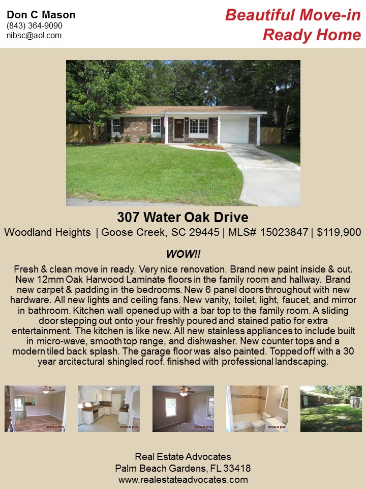 If you cannot see the image above, please visit: http://www.charlestonvirtualhomes.com/flyers/307WaterOak_1015.htm