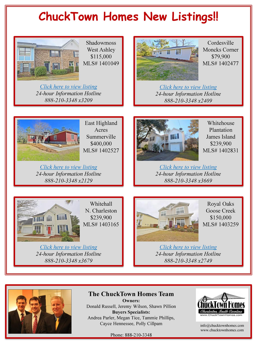 If you cannot see the image above, please visit: http://www.charlestonvirtualhomes.com/flyers/ChuckTownHomesNewListings_021014.htm