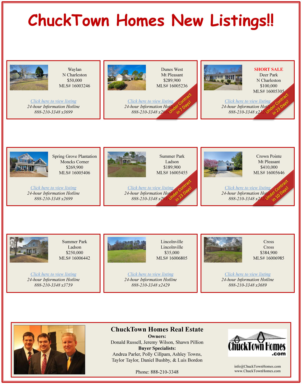If you cannot see the image above, please visit: http://www.charlestonvirtualhomes.com/flyers/ChuckTownHomesNewListings_032816.htm
