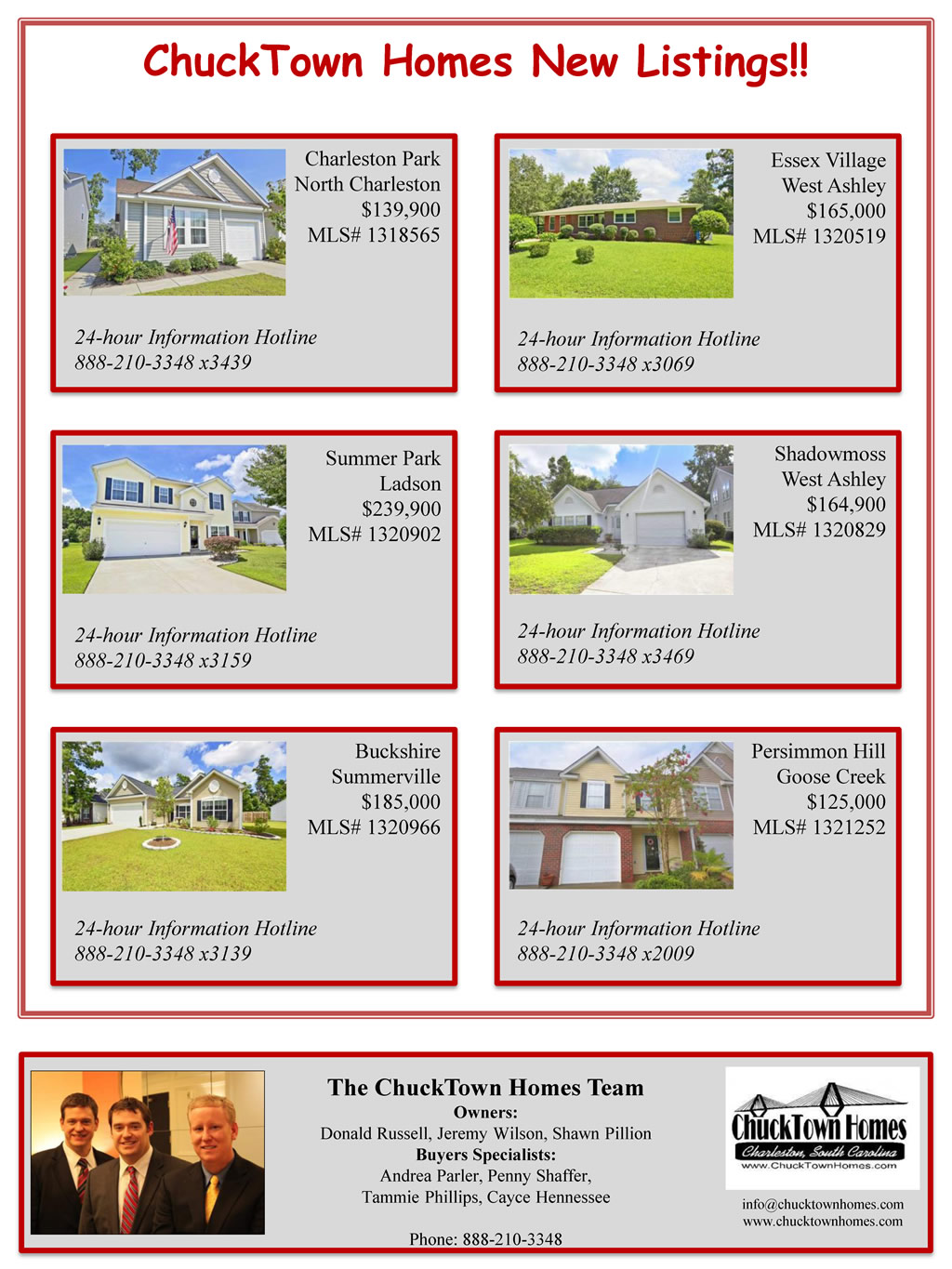 If you cannot see the image above, please visit: http://www.charlestonvirtualhomes.com/flyers/ChuckTownHomesNewListings_081613.htm