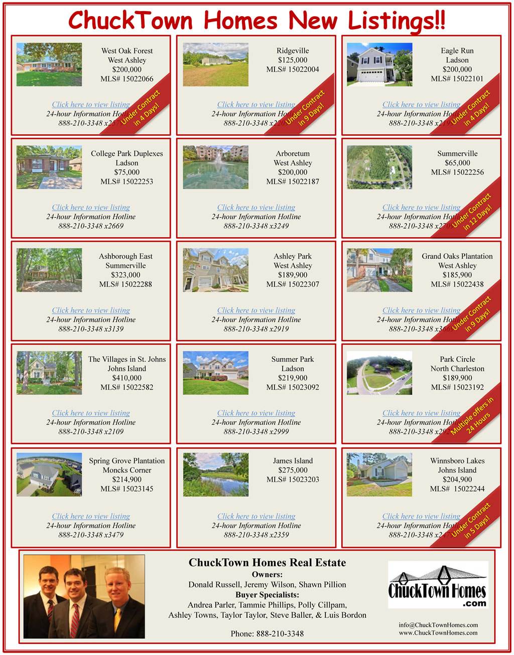 If you cannot see the image above, please visit: http://www.charlestonvirtualhomes.com/flyers/ChuckTownHomesNewListings_090315.htm