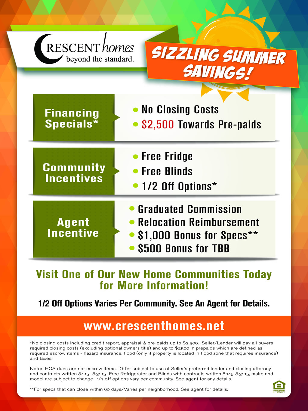 If you cannot see the image above, please visit: http://www.charlestonvirtualhomes.com/flyers/Crescent_SizzlingSummer_0815.htm