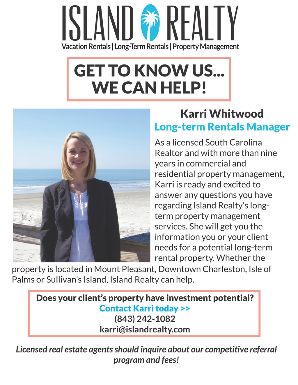 If you cannot see the image above, please visit: http://www.charlestonvirtualhomes.com/flyers/IslandRealty_MeetKarri_0417.htm