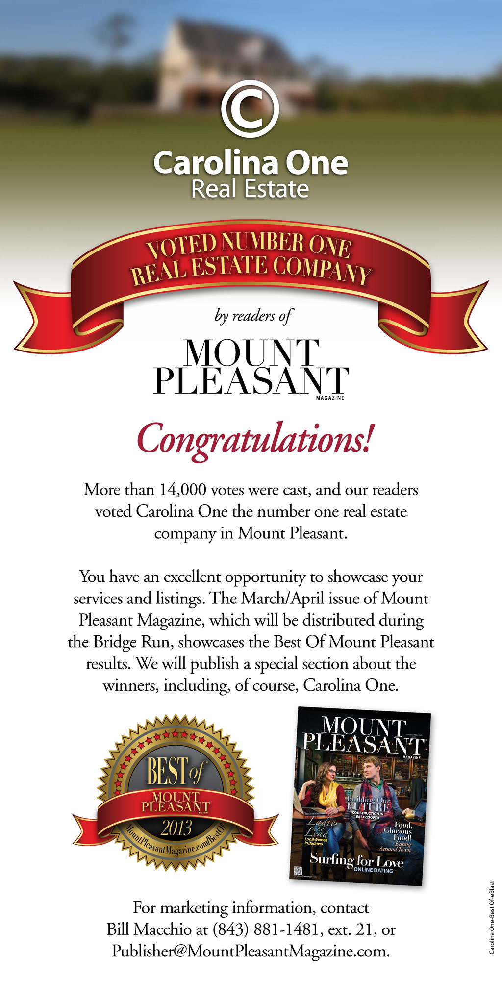 Cell phone 843-345-7012 Read latest edition of magazine from this link www.MountPleasantMagazine.com/green