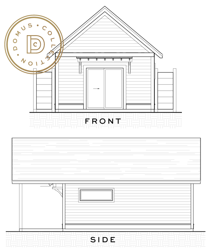 A standard garden shed comes with each Domus, but can be upgraded to a full ADU building, the Cabana or Casita designs.